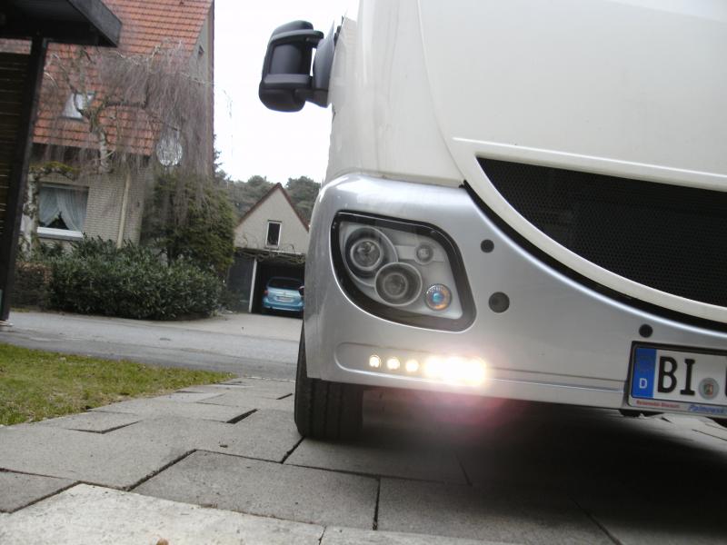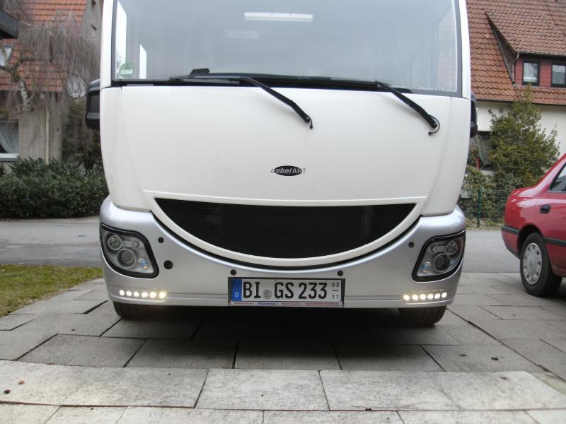 2-Kreis Luftfederung Goldschmitt hinten, 4 Mtr Omnistor Markiese, Gasbackofen, Kühl.-Gefrierkombi 175 Ltr, Dunstabzughaube,autom. Satanlage mit 24 zoll LED-Flachbild mit DVBT, Innenbeleuchtung teils LED, Solar 13 Amp. mit MPP-regler, B2B- Lader und BM1 Batteriecomputer, 200 AH Natogels, Vorderfedern verstärkt von Goldschmitt, Rückfahrkamera, Kammera als Rückspiegel und Kamera am Grauwasserablauf, DVD-Navi Festeinbau. Meist fahren wir zu zweit, aber auch zu viert, bisher keine Mängel oder Reparaturen. Das Raumgfühl zu zweit ist toll, zu viert in Ordnug.