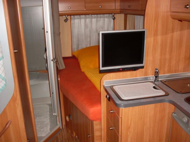 | Winkelküche, Doppelbett, großes Bad | Raumaufteilung (Halbdinette, Stockbetten?) |