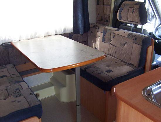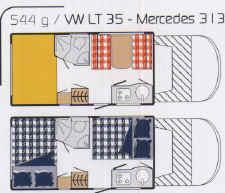 | Heckbett quer Garage Sitzgruppe seitlich zur Küche Beifahrersitz drehbar | Raumaufteilung (Halbdinette, Stockbetten?) |