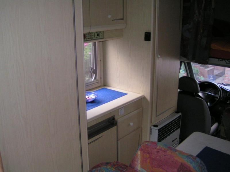 | Mitteldinette, Hinten Stockbett und Sofa, Küche und Nasszelle links | Raumaufteilung (Halbdinette, Stockbetten?) |