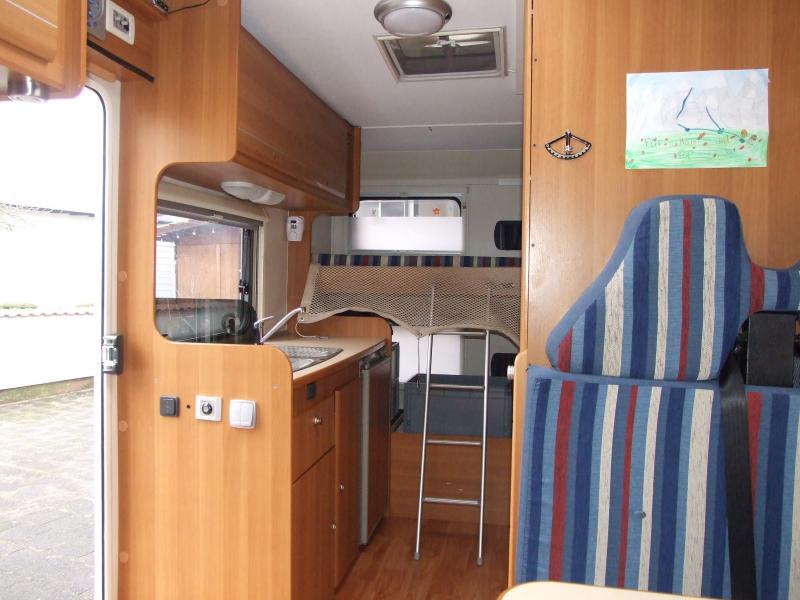 | Alkoven, Halbdinette, Stockbetten (unteres Stockbett ausgebaut und als Garage genutzt) | Raumaufteilung (Halbdinette, Stockbetten?) |