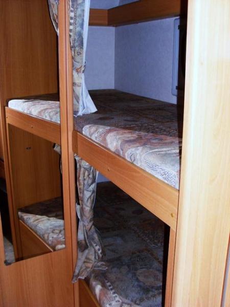 | 2er und 4er Dinette, 2 Stockbetten hinten längs auf backbord-Seite , BAD/WC , | Raumaufteilung (Halbdinette, Stockbetten?) |
