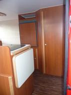 Das Basisfahrzeug wurde gebraucht erworben. Der Ausbau ist neuwertig (Reisemobile Knobloch, Sachsen). Auf der Fahrerseite haben ein Kompressor-Kühlschrank, ein Kleiderschrank und eine Not-Toilette (Porta Potti) Platz gefunden. Um den Aktionsradius des Reisemobils von Propangas so unabhängig wie möglich zu machen, wurde eine Webasto Diesel-Heizung eingebaut. Vier doppelt verglaste Seitz-Fenster (mit Verdunklungs- und Mückenschutzrollo)und eine Dachluke sorgen dafür, dass ausreichend Licht vorhanden ist. Die bequeme L-förmige Sitzecke im Heck lässt sich mit wenigen Handgriffen zu einem komfortablen Schlafplatz umfunktionieren.