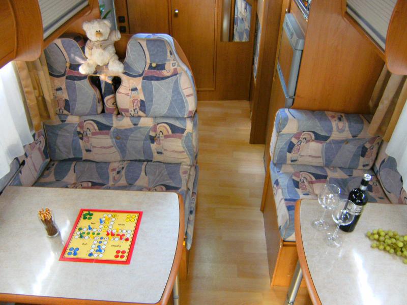 | Etagenbett, Bad, L-Küche, Einzeldinette, Doppeldinette | Raumaufteilung (Halbdinette, Stockbetten?) |