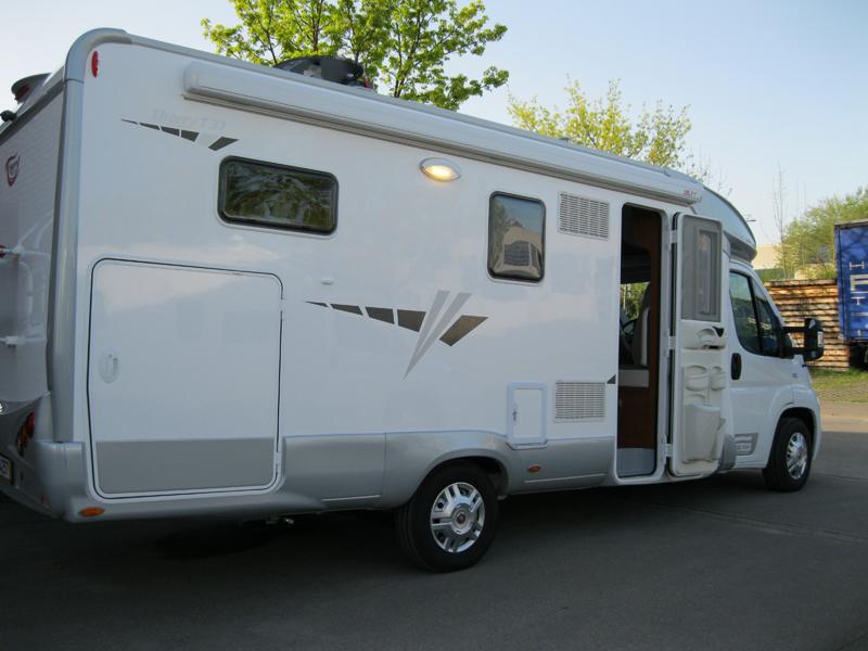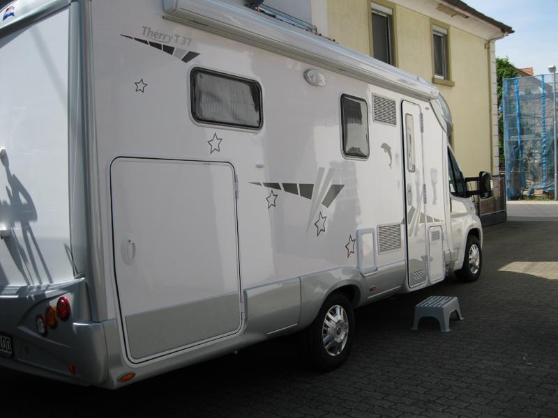 - Im Preis enthaltene Ausstattungen: Backofen, 4m Markise, Multimedia Radio mit Navigation,DVD,MP3 und Rückfahrkamera, Automatische Sat Anlage, 16" TFT mit DVD, 100 WP Solaranlage, 90 Ah Bordbatterie, SMV-Luftfederung. - 165 Liter Kühlschrank mit getrenntem Gefrierfach u.AES Schaltung - 4 m Kederleiste unter der Markise. Teppichboden im ganzen Fahrzeug. - Fahrradträger am Heck angebracht. - Manuelle Hubstützen hinten. - Umbauten: Kleiderschrank abgetrennt so dass ein Teil noch zur Garage gehört. In jedem Schrank einen Zwischenboden angebracht. Im Küchenunterschrank eine zusätzliche Schublade angebracht. - 3 zusätzliche Steckdosen in der Küche und in der Toilette angebracht. - Der original Gasherd wurde gegen einen Herd mit Glasdeckel getauscht, dadurch mehr Abstellfläche vorhanden. - In alle Stauklappen je einen Einlegeboden. Unter einem Bett einen Doppelboden installiert - Wintertauglichkeit soll er sein, da wir aber keine Wintercamper sind ist das egal - Anzahl der Schlafplätze 3/4 - Raumgefühl gut, schön hell und übersichtlich. - Qualität der Möbel ist ok. Alle Scharniere fest. - Funktionalität von Küche und Bad sehr gut. Toilette und Dusche sind getrennt alles groß genug.In der Küche ist jetzt auch genug Abstellplatz vorhanden - Das Fahrzeug wurde von mir beim TÜV gewogen. - Fahrzeuggewicht mit allen eingebauten Zubehörteilen, vollem Dieseltank und 40 Liter Frischwasser = 2990 kg. | Detailierte Beschreibung Deines Fahrzeuges (Zusatzausstattung, gefahrene Touren, Kilometerleistung, Wintertauglichkeit, bisherige Reparaturen, maximale Anzahl der Mitfahrer, Raumgefühl.....etc) |