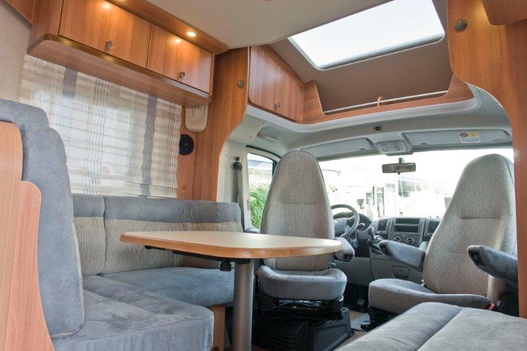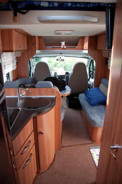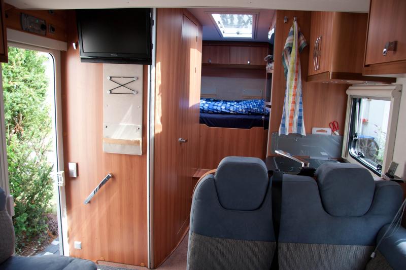 | Halbdinette, Hubbett über Sitzgruppe, Heckdoppelbett quer | Raumaufteilung (Halbdinette, Stockbetten?) |