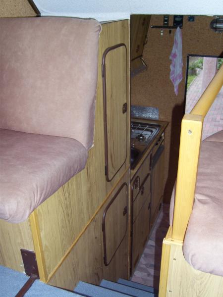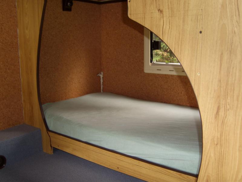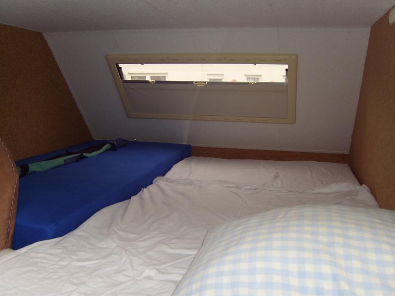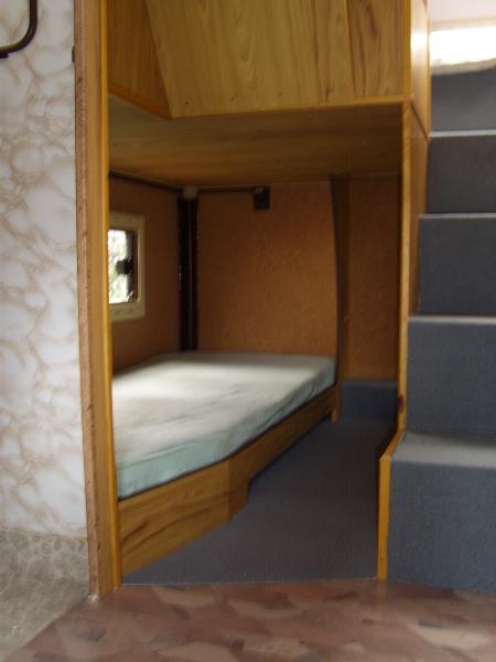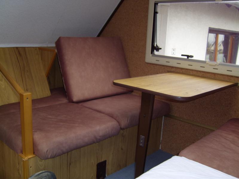 | Unten Bad Küchenzeile zwei Kojen. Oben großes Doppelbett zwei Sitzgelegenheiten mit Tisch und Balkon | Raumaufteilung (Halbdinette, Stockbetten?) |