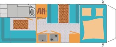 | 6 Schlafplätze/ Hintere Sitzbank zum Festbett umgebaut | Raumaufteilung (Halbdinette, Stockbetten?) |
