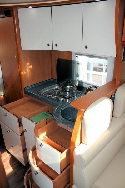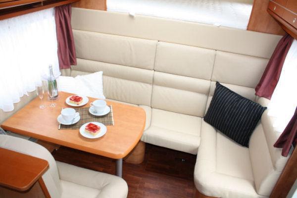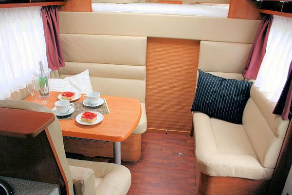 | Vorne großer Alkoven, hinten riesiges Doppelbett | Raumaufteilung (Halbdinette, Stockbetten?) |