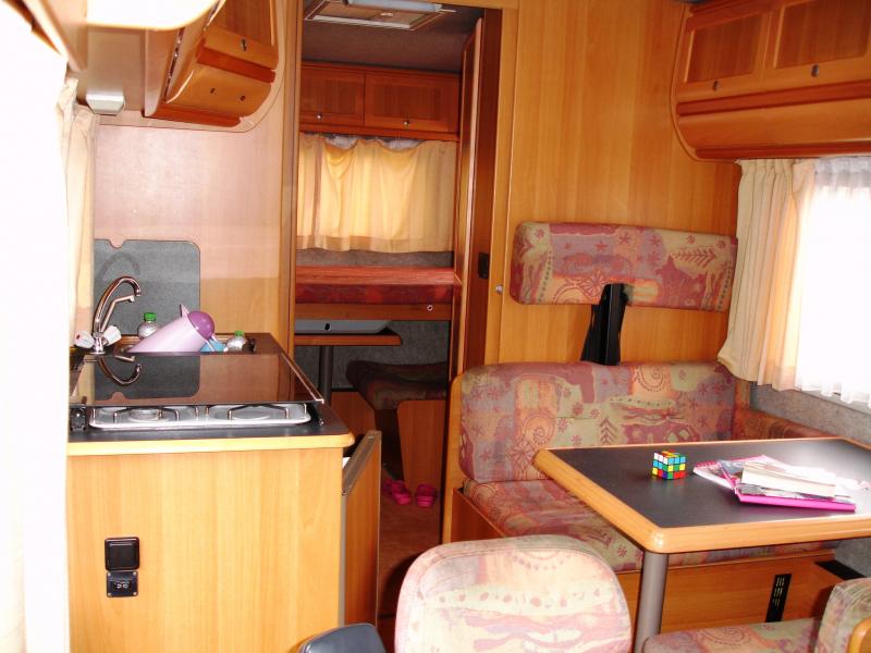 | Hubbett, Mittelsitzgruppe, ausziehbares Heckbett(incl.Sitzplätze2) | Raumaufteilung (Halbdinette, Stockbetten?) |
