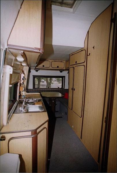 | Hecksitzgruppe/Bett, Mitte Bad u. Küche, Vorne Fahrerhaus | Raumaufteilung (Halbdinette, Stockbetten?) |