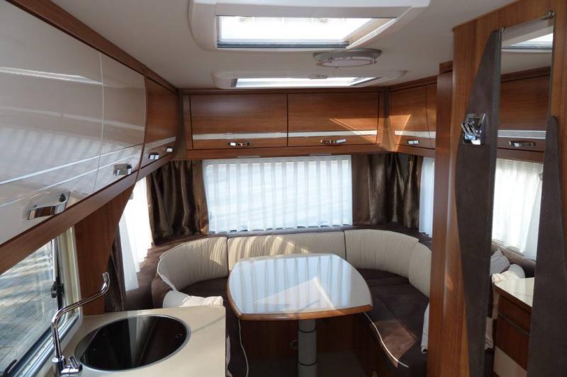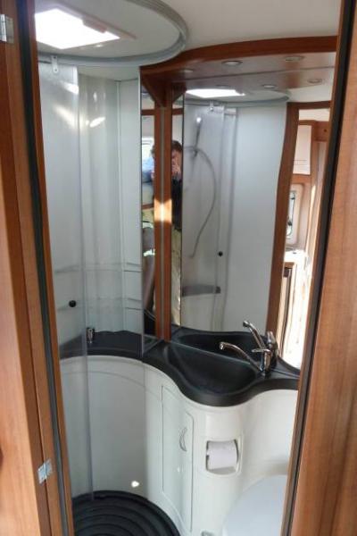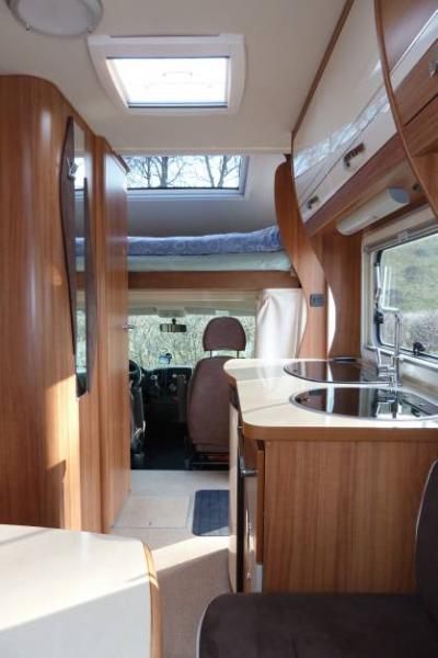 | Rundsitzgruppe im Heck und großer Alkoven | Raumaufteilung (Halbdinette, Stockbetten?) |