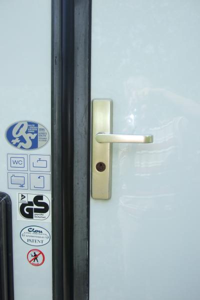 Besonders sichere und stabile Scharniere in Klavierband aus Edelstahl bei Türen und Klappen. Aufbau-Eingangstür mit Haustürbeschlag und Sicherheitsbeschlag/-Türzylinder.