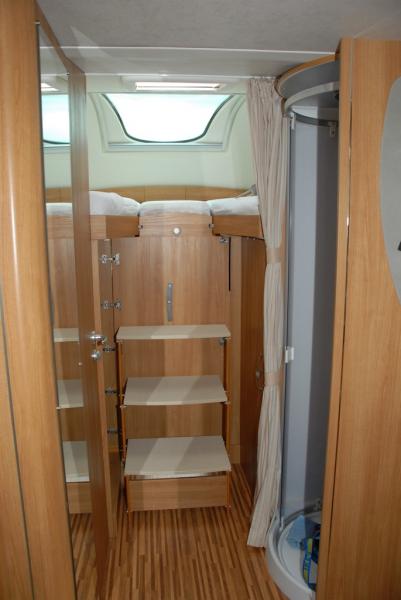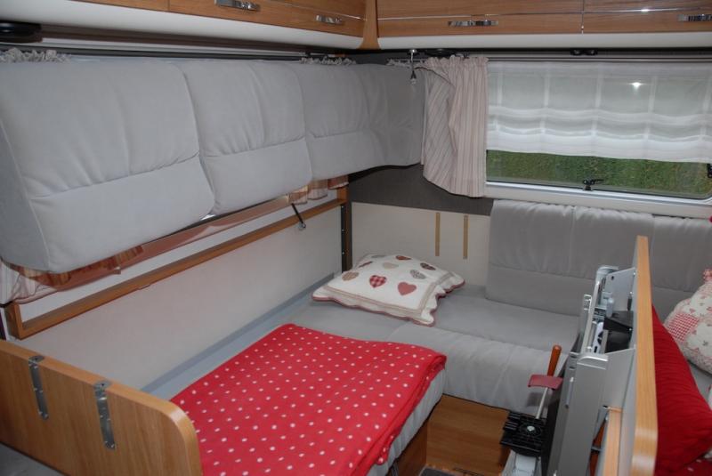 | Hecksitzgruppe, Raumbad, Einzelbetten im Alkoven, vergrößerte Garage | Raumaufteilung (Halbdinette, Stockbetten?) |