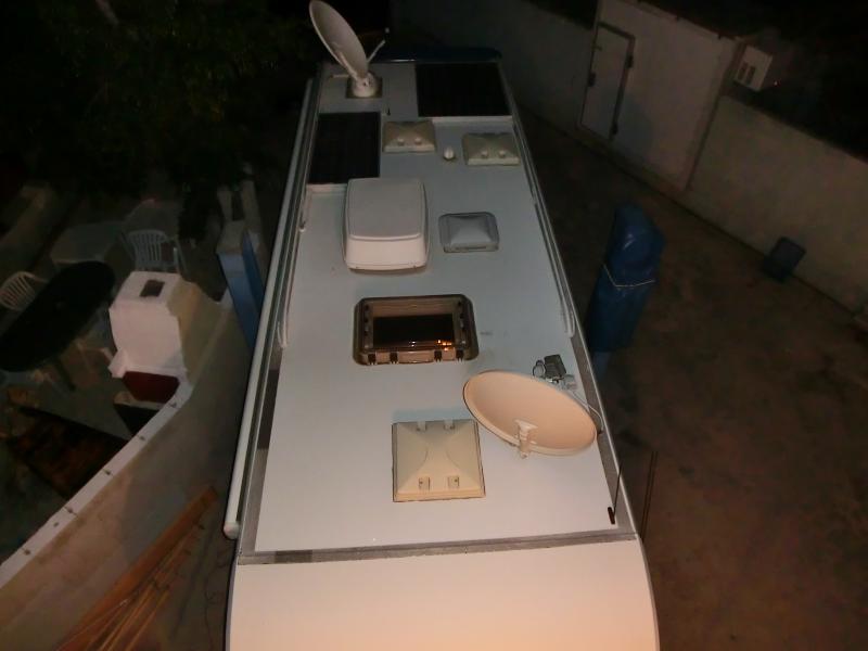 Luftfederung Hinterachse, elek. Hubstützen, Motorradrampe, Solar 250 Watt, Aufbaubatterieen 525 Ah, Wechselrichter 1200 Watt und 600 Watt, seperate Internetantenne halbautomatisch, Satantenne automatisch, Aufbauklima, Zerhackerpumpe, Fäkalientank, Generator, Alarmanlage mit Aussenhautüberwachung und Kameras, 2 zusätzliche Frischwassertanks a 50 l, 90 l Kompresserkühlschrank in der Garage, Navi auf eingebautem PC mit 2 Bildschirmen 7 Zoll und 22 Zoll, 2 TV + Receiver, LED Beleuchtung, usw. Automatisch nachführende Solaranlage