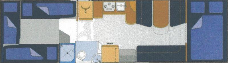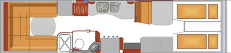 | Ursprünglich: Alkoven quer / Grosse Rundsitzgruppe vorne / Kinderzimmer mit 3 Einzelbetten über verkürzter Smart-Garage | Raumaufteilung (Halbdinette, Stockbetten?) |