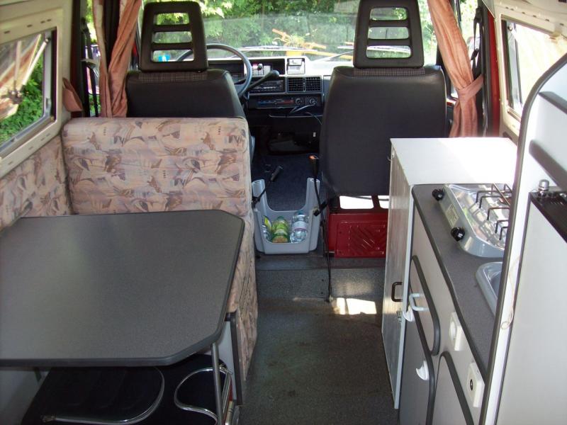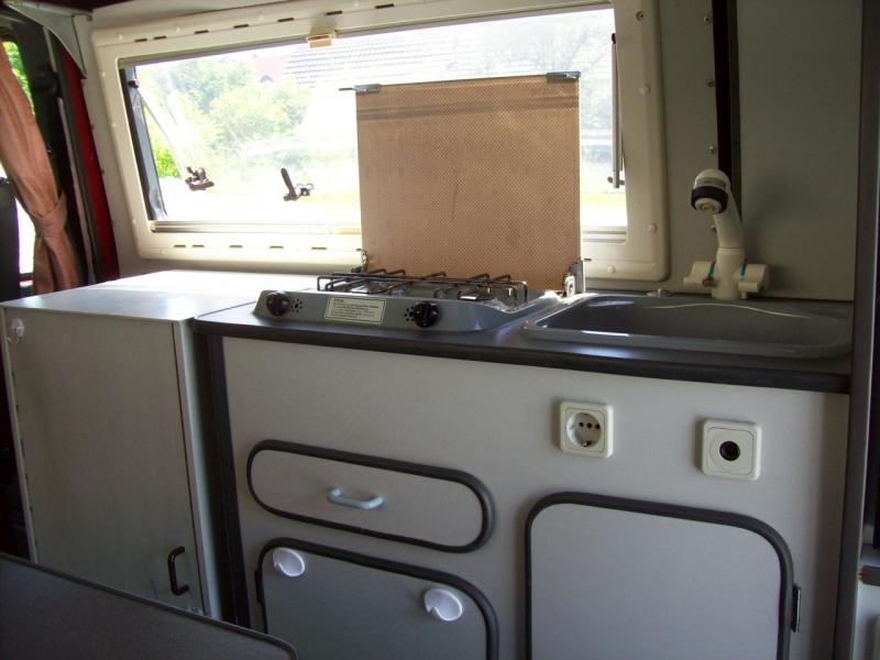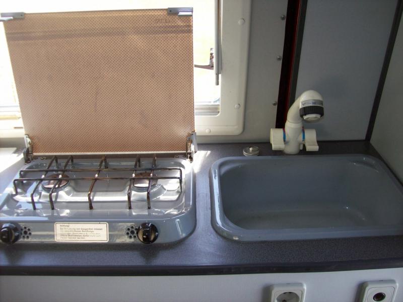 - Hochdach - Gaskühlschrank - 12l-Kaltwassertank (läßt sich wieder umbauen auf 60L) - WC (kaum benutzt) - Gasherd - TRUMA Gasheizung - Ventilator unter Decke