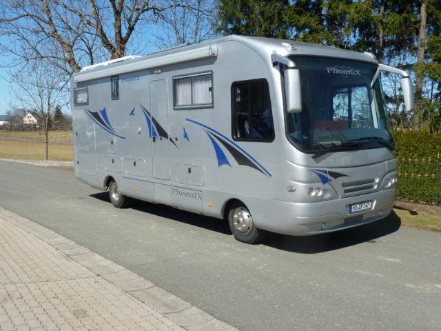 Aufbau : Phoenix Liner mit Lounge-Grundriß, brilliantsilber-metallic, Möbel Edelkirsche, Polster Nappa Softline (blau), Rückfahrkamera farbig, Radio-CD mit Soundsystem, Zusatzlautsprecher Schlafzimmer, Navi Festeinbau, Dusche separat, Toilette separat (mit Tür), Schiebetür zum Wohnraum, Heckeinzelbetten längs mit Zwischenraummatratze, Durchreiche zur Heckgarage, Dachreling mit Heckleiter, Dach voll begehbar, Busspiegel elektrisch, Isolierrolladen elektrisch Frontscheibe, Kompressor-Kühli mit Gefrierfach, Eingangstür mit Sicherheitsschloß und FB, beheizter Doppelboden und Stauräume, große Heckgarage Tür 130 x 130 cm, Dachlüfter MKM, Küchenplatte Mineralgranit mit eingelassener Spüle, Innenbeleuchtung LED, ALDE Warmwasserheizung, Auto-SAT mit TFT/DVD, Markise Omnistor 8000, Goldschmitt Hydraulikstützen je 4,6 to, mit Autolevel.