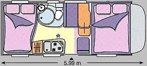 | Halbdinette, Hubbett hinten quer | Raumaufteilung (Halbdinette, Stockbetten?) |