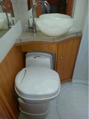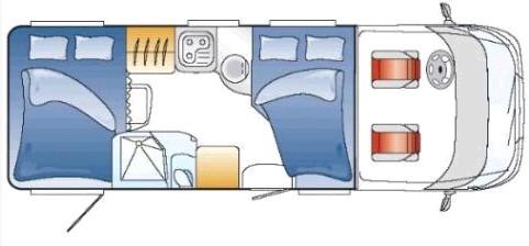 | Halbdinette, Pilotensitze drehbar, Doppelbett quer, Dusche/WC/ Waschbecken | Raumaufteilung (Halbdinette, Stockbetten?) |