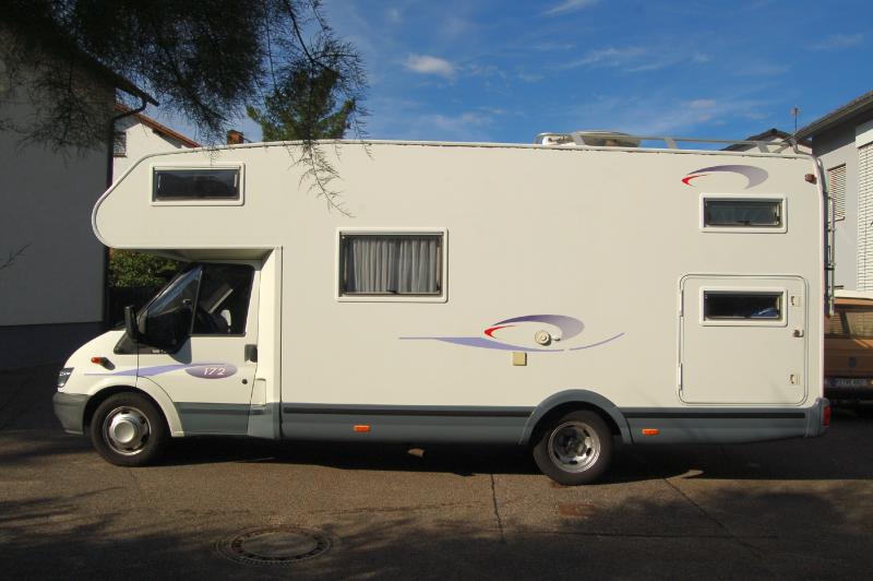 7m Alkoven mit 7 Schlafplätzen und 6 Esstischplätzen an 2 Dinetten, baugleich Chausson Welcome 26 GA. Ausstattung mit hochwertigen Bauteilen, z.B. Seitz Rahmenfenstern Truma- Heizung etc. Dank des Heckantriebes gute Traktion in allen Situationen, nasse Wiesen sind kein Problem. Eingeschränkte Wintertauglichkeit, da Abwassertank nicht beheizt. Mit dem Aufbau sind wir sehr zufrieden, die ab Werk eingebauten Mängel (beschädigte Dachluke, defektes Ladegerät, falsch eingestellte Türen, abfallende Zierleiste im Alkoven etc) sind behoben worden. Nach 4 Jahren versprödeten die Plastikteile des Bades und es brachen der Abfluß aus dem Waschbecken, die Duscharmatur in den Plastikmontagetunnel ein.