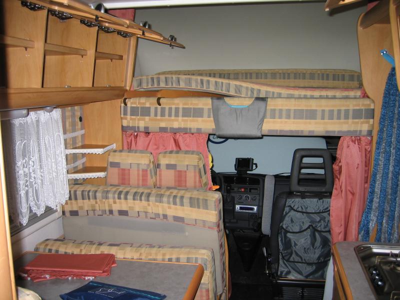 | Stockbetten, aber nur eines eingebaut; | Raumaufteilung (Halbdinette, Stockbetten?) |