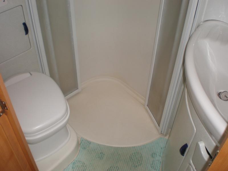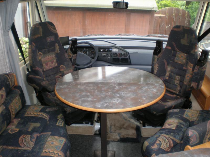 Der S 520 gehört offenbar zu den eher seltenen Fahrzeugen, möglicherweise wegen des nicht allzu üppigen Aussenstauraums, aber für uns macht die tolle Rundsitzgruppe und durchdachte Möblierung dieses Manko wett. Der Innenraum wirkt groß und luftig, eigentlich ein Wohnzimmer auf Rädern, der Schrankraum ist ausreichend, der Kühlschrank sogar in Blickhöhe! Dusche und WC sind getrennt und trotzdem geräumig genug. Das Fahrzeug hat einige Extras, die uns die Entscheidung auch zusätzlich erleichtert haben, Luftfederung mit Kompressor, Automatik, Zentralverriegelung für beide Türen und das große Aussenfach ohne Funk, elektr. Einstiegsstufen, Rückfahrkamera per Funk, höhenverstellbaren Radträger, abnehmbare Rollerbühne und Anhängerkupplung. Leider ist die vorhandene selbstsuchende Sat-Antenne noch analog und Umrüstung recht teuer, mal sehen. Was uns allerdings wirklich noch fehlt ist der Tempomat, den wir bei unserem alten Rover schätzen gelernt, und später in unseren LMC auch eingebaut haben.