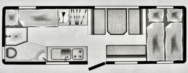 | 2* Stockbetten, 2* Alkoven, Dinette umbaubar als Rundsitzgruppe (auch 2 Betten möglich)Notbett | Raumaufteilung (Halbdinette, Stockbetten?) |
