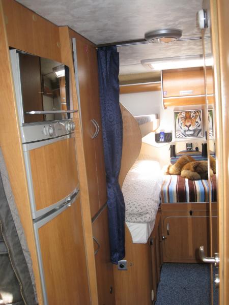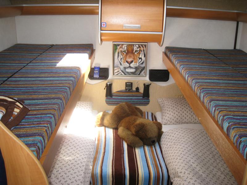 - Anzahl der Schlafplätze: 4 (2 seitliche einfahrbare Hochbetten)