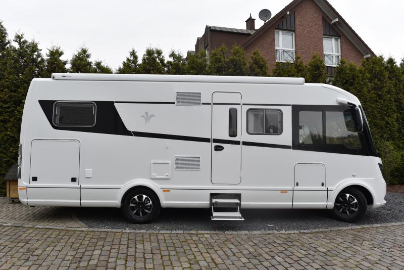 Alle Ausstattungspakete (LP, CHP, CP1, MMP) zusätzlich 150 PS Comfort-Matic, 120 Ltr-Tank, LM-Felgen mit Schwerlastreifen, Spurverbreiterung vorn, AHK, Stauraumkiste mit Auszug, ClouLine Design, 5m-Markise mit LEDs, Garagentür auf beiden Seiten, F-Vent über der Küche, Frontschränke statt Hubbett, Keramik-WC mit SOG, Truma DuoControl CS, Gasanschluß Seitenwand, ALDE Heizung, Solaranlage, 2 AGM Batt, Akzentbeleuchtung, Steckdose in der Garage, Fahrradhalter und Lagerboxen von Chrismotec in der Garage, Polster in Leder anthrazit. Wiegt leer 4 to, was 500 kg Zuladung ergibt. Auflastung auf 4,8 to mit Nachrüstung Luftfeder hinten möglich. Gewicht urlaubsklar mit EBikes und vollem Wassertank, Getränken und Lebensmitteln 4469 kg.