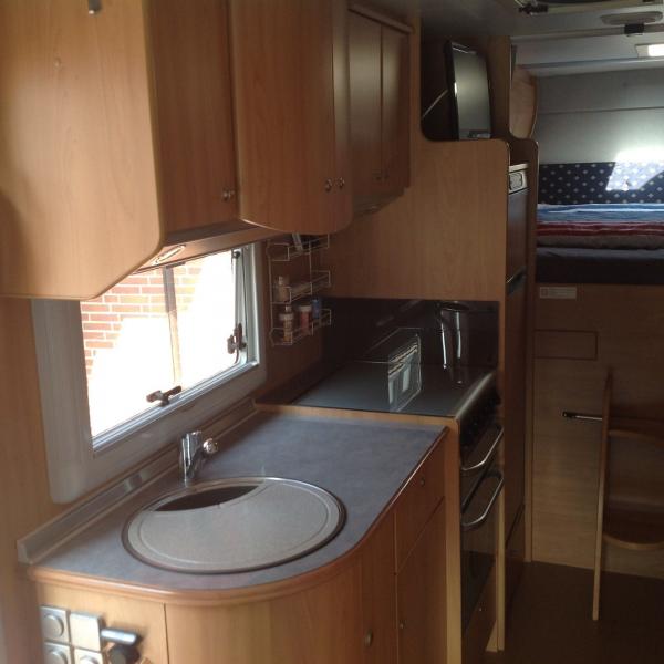| L-Sitzgruppe mit gegenüber liegender Sitzbank. Querbett, Hubbett, Küche, Bad mit sep. Dusche. | Raumaufteilung (Halbdinette, Stockbetten?) |