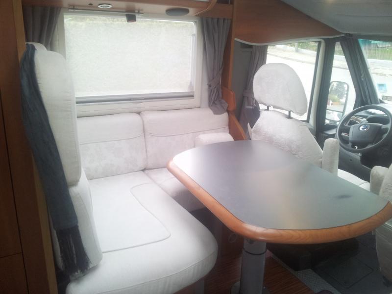 Motor: Iveco 3l 156 PS AHK, Navi, Tempomat, 4 Flammen Herd, Backofen, Grill, 2 11kg Gasflaschen, viel Stauraum im Bad, Dusche mit Falttüre, Kühlschrank, Heckgarage von 2 Seiten zugänglich, Stauraum unter Fahrzeugboden, ein Teil der Sitzgruppe kann auch bei heruntergeklapptem Hubbett benützt werden. Nachgerüstet: Fernseher, Satantenne, 2 mal Rückfahrkamera (als Rückspiegel und zum Rangieren), Elektrische Ablassventile für Frisch und Brauchwasser, Kamera für Brauchwasserablauf. Einziger Nachteil ist die etwas knapp bemessene Zuladung. Reisefertig und mit Anhänger (Stützlast ca 80 kg) sehr nahe an der 3500 kg Grenze. Ich hab das WoMo noch nicht sehr lange aber bisher bin ich sehr zufrieden. Auch mit Anhänger kann man für WoMo Verhältnisse zügig fahren, und das mit Derehzahlen von 1500 bis 2500, was sich erfreulich auf die Fahrgeräusche und den Spritvebrauch auswirkt. | Detailierte Beschreibung Deines Fahrzeuges (Zusatzausstattung, gefahrene Touren, Kilometerleistung, Wintertauglichkeit, bisherige Reparaturen, maximale Anzahl der Mitfahrer, Raumgefühl.....etc) |