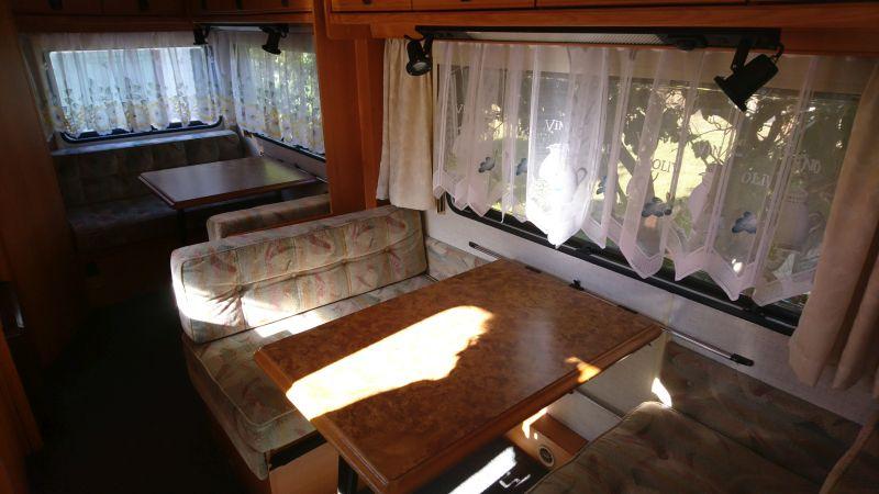 gekauft am 1.2.2021 mit Twin-Sat-Antenne, LCD-Fernseher, 2x100W Solarpanels, Linnepe Luftfederung, 16" Fahrwerk, 2x 80Ah Gel-Batterien. Setdem bis 4/22 ca 5000km gefahren nach Österreich und Frankreich. Nachgerüstet mit Microwelle, 1500W Sinuswandler, Netzvorrangschaltung, FI/LS, MPPT Solarregler, Kompressor und 2-Kreis-Umbau der Luftfederung, VDO Tempomat, Drehzahlmesser, Reifendruckkontrolle, LTE-Router, Audioanlage mit DSP-FW, Subwoofer, und viele weitere Kleinigkeiten --> Link die das Reisen angenehmer machen. Reparaturen: Durchrostung unter Starterbatterie, Lackabplatzer rechter Kotflügel, undichte Aluleiste am Alkoven, Halterung des Fahrradträgers. Wir sind nur zu zweit unterwegs, es gibt aber noch zwei Sitzplätze mit (Becken-)Gurten. Das Raumgefühl gefällt uns viel besser als in den gemieteten modernen Wohnmobilen, die wir vorher hatten, da es keine Trennwände gibt, die die Sicht nach hinten behindern. seit April '22: H-Kennzeichen, Auflastung von 3,1 auf 3,5t Wertgutachten: Oldtimer Zustand 2, € 18.100,- Großer Vorteil eines Oldtimers: man kann (fast) alles selbst reparieren :-) | Detailierte Beschreibung Deines Fahrzeuges (Zusatzausstattung, gefahrene Touren, Kilometerleistung, Wintertauglichkeit, bisherige Reparaturen, maximale Anzahl der Mitfahrer, Raumgefühl.....etc) |