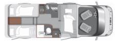 | 2 Betten hinten (längs), Einzel-Hubbett | Raumaufteilung (Halbdinette, Stockbetten?) |