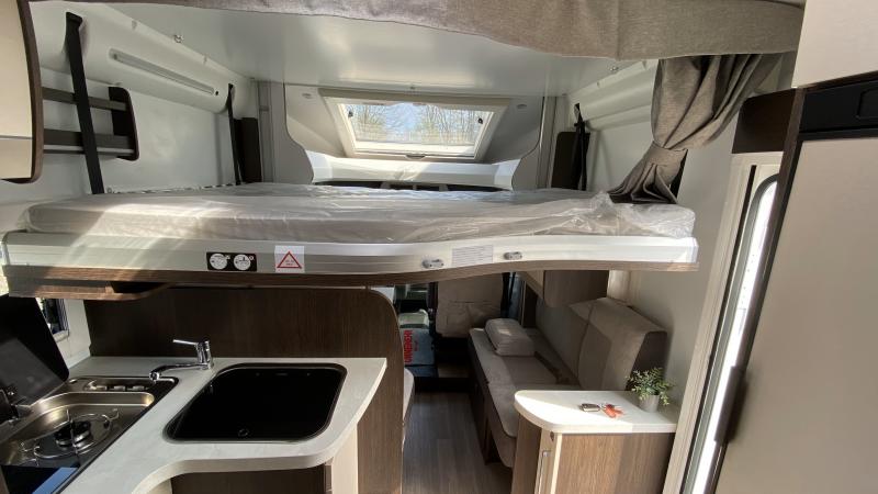 | Umbaubett Längssitzgruppe und Hubbett darüber | Raumaufteilung (Halbdinette, Stockbetten?) |