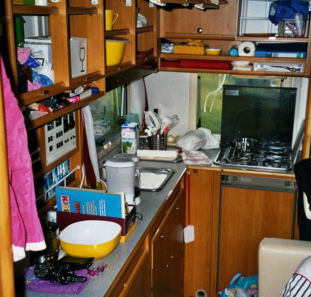| Viererdinette, große Küche über Eck, viele Schränke und große Fenster | Raumaufteilung (Halbdinette, Stockbetten?) |
