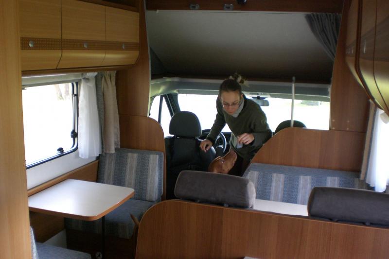 bei uns für max. 2 Personen + 1 Hund, die 2. Dinette wird noch zum "Sofa" umgebaut, das untere Etagenbett weicht zugunsten der somit erweiterten Heckgarage, Solaranlage ist in Planung