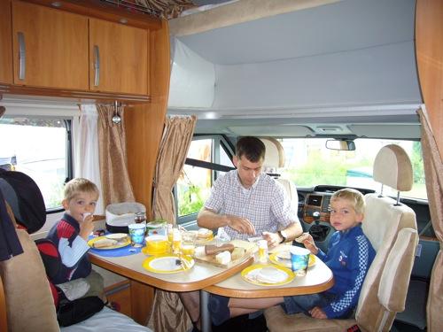 | Halbdinette, Etagenbett im Heck | Raumaufteilung (Halbdinette, Stockbetten?) |