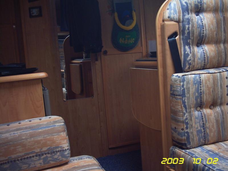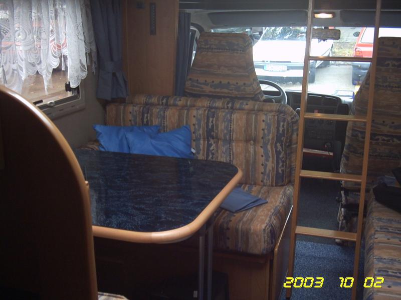 folgende Zusatzausstattung: 75 W Solaranlage, Sattelitenanlage (manuell), 600 W Wechselrichter, SOG, Paroli Fußbodenheizung (230V), HEKI, Wir sind fast ausschlißlich in Deutschland unterwegs. Bevorzugte Ziele: Harz, Nordsee, Weserbergland, Thüringen, Meck-Pomm. Wir besitzen dieses Fahrzeug seit 2003 und sind damit ca. 31000km gefahren. Meistens sind wir zu zweit, manchmal auch mit bis zu drei Enkel mit. Es ist auch mit drei Kindern noch genügend Platz (auch an Regentagen) vorhanden. Wintertauglichkeit ist durch den doppelten Boden gut. Bis ca. 7-8 Grad minus keine Probleme, darunter wird es im Fahrerhaus doch recht kühl. Lösung: Decke am Alkoven unter die Matratze stecken und runterhängen lassen oder wenn Stromanschluß, Heizlüfter. Die größte Reparatur war bisher der Austausch der Alko Hinterachse. Einer der Drehstäbe war gebrochen und nach auskunft von Alko wirrd der nächste nicht lange auf sich warten lassen. Also Austausch der gesamten Achse, zumal das auch billiger war als die Summe der auszuwechselnden Teile. Als zugabe ist nun die Hinterbremse und Stoßdämpfer auch neu (war alles schon an derAchse montiert, meine Werkstatt hat's gefreut!) Zahnriemen wurde (Vorsichtshalber) gewechselt, Starterbatterie hat den Geist aufgegeben (war ja noch die erste), Solarpaneel war defekt