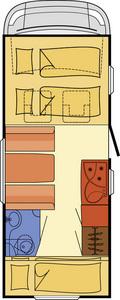 | Stockbetten, Dinette (zum Bett umbaubar), Alkoven | Raumaufteilung (Halbdinette, Stockbetten?) |