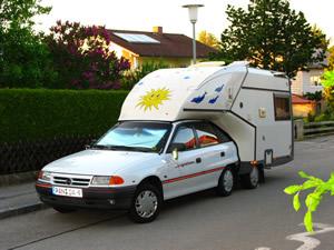 | Weil trotz starrer Verbindung trennbar Verwendung d. Opel-Astra für Beruf oder Ausfahrten i. Urlaub. | Warum für dieses Modell entschieden? |