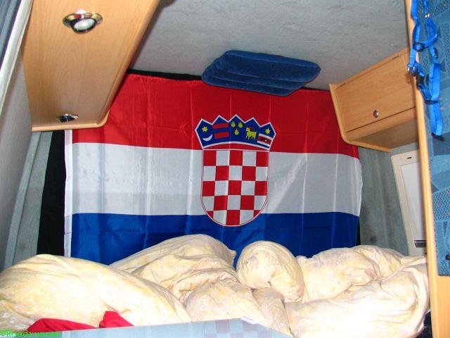 | Hinten Schlafzimmer, mitte Bad und Küche, vorne Wohnzimmer | Raumaufteilung (Halbdinette, Stockbetten?) |