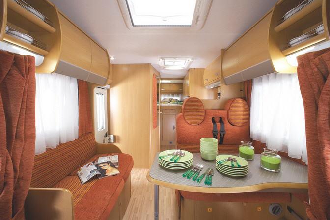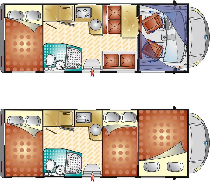 | Hinten und vorne je 1 grosses Doppelbett, Halbdinette, grosse Garage, sep. Dusche/WC | Raumaufteilung (Halbdinette, Stockbetten?) |