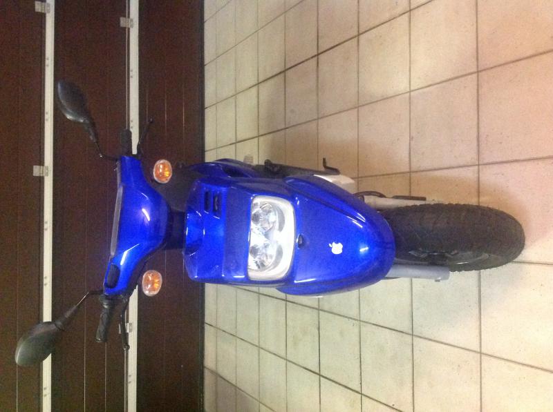 ich verkaufe meinen Scooter 50 ccm in blau / weiß. Zwei neue Reifen 100 % Profil aus 2014 – keine 80 km gefahren. Das Moped ist aus Juli 2008 und sieht fast wie neu aus – lediglich kleinere Gebrauchsspuren. Kilometerstand 4960 km !! Nur bei schönem Wetter im Urlaub gefahren. Leistung 2,4 kW.