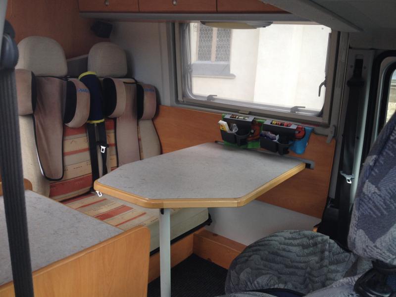 Truma Gasheizung Küche mit 2-flammigem Gaskocher, Spüle und elektrischem Kompressor Kühlschrank Mit Eisfach, das seinen Namen auch verdient 2 x 90 Ah AGM Batterien (locker ausreichend für eine autarke Versorgung über 3 - 4 Tage) Sitzgruppe aus Sitzbank und drehbaren Vordersitzen DVBT Fernseher mit DVD Laufwerk CD-Autoradio mit Boxen im Fahrerhaus und Wohnraum Bad mit Toilette, Waschbecken und Dusche Stockbetten im Heck ca. 180 x 80 cm und 170 x 80 cm (beide Betten mit Fallschutz, so dass auch kleinste Erdenbürger sicher schlafen können)) Umbaubahre Sitzgruppe ca. 190 x 131 cm 4 Sitzplätze mit 3 Punktgurten Isolierung Hecktüren Abdeckung/Isolierung Frontscheibe Markise (inkl. Ausbau zum Vorzelt) Anhängerkupplung (Stützlast 130kg) Rückfahrkamera 8-fach bereift