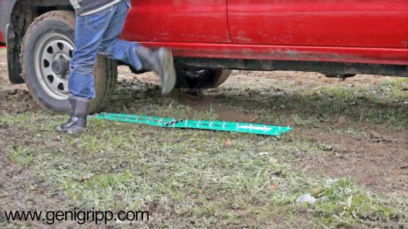 Die Einsatzmöglichkeiten der genigripp-Anfahrhilfe sind: Im Morast (nasser Boden) auf Eis, im Sand und im Schnee. - genigripp MINI: Nutzbare Länge: 750 mm / Gewicht: 2,1 kg - genigripp MIDI: Nutzbare Länge: 1‘500 mm / Gewicht: 4,5 kg - genigripp MAXI: Nutzbare Länge: 2‘250 mm / Gewicht: 6,1 Kg Die Breite der genigripp-Anfahrhilfe ist je 150 mm. Das technisch verblüffende ist, dass die genigripp-Typen MIDI und MAXI auf eine kurze Länge von 750 mm zusammenlegbar sind und somit in jedem Fahrzeug problemlos Platz haben. genigripp ist eine durch chaltbod gmbh eingetragene Marke und mit eingetragenem Designschutz.