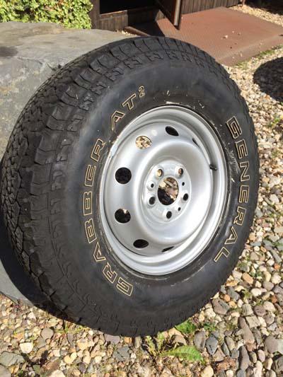 Habe noch ein gebrauchtes E-Rad liegen, 235x75x15 General Grabber AT2 auf Fiat original-Felge.