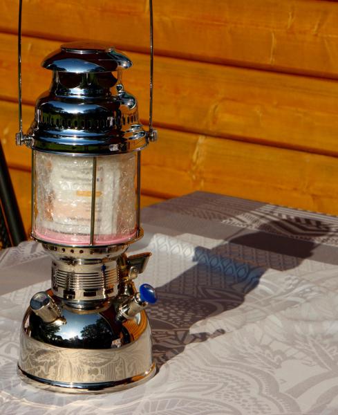 Die Lampe ist ca. 40 cm hoch und es handelt sich um eine Petroleum Starklichtlampe.