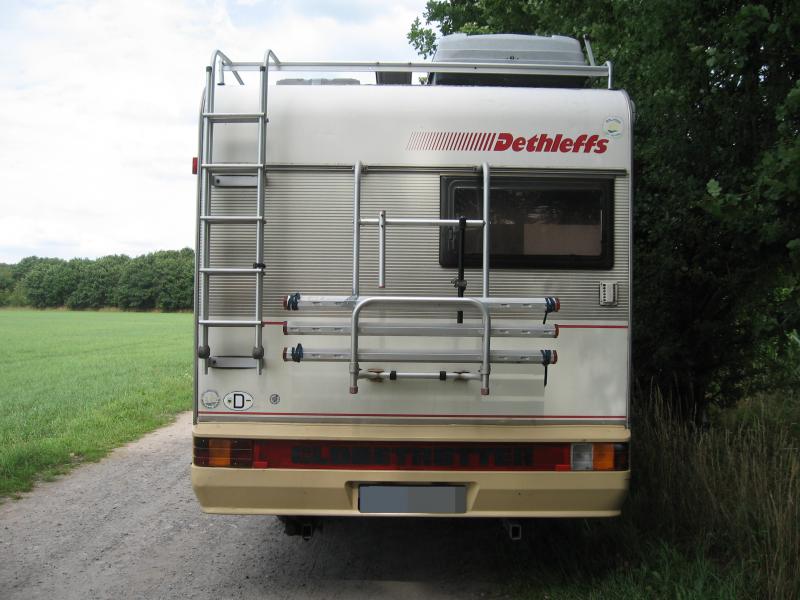 Verkauft wird das Wohnmobil mit Fahrradträger für drei Fahrräder, einer Dachbox, zwei Gasflaschen (eine davon ist voll!) sowie einer Markise. Auf Wunsch kann noch eine passende Motorradbühne zusätzlich erworben werden.