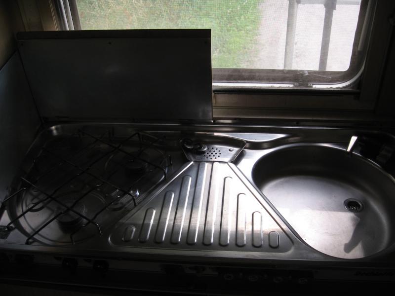 In der Küche gibt es zwei Gaskochfelder sowie ein Spülbecken. Der Wasserhahn kann während der Fahrt heruntergeklappt werden. Es gibt außerdem einen Kühlschrank mit kleinem Eisfach. Dieser kann sowohl mit Gas als auch mit Strom betrieben werden.
